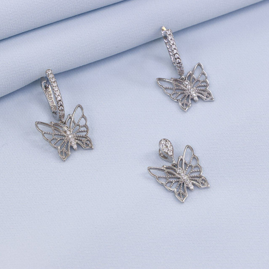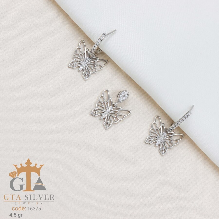 نیم ست نقره میکرو طرح پروانه کد 16375