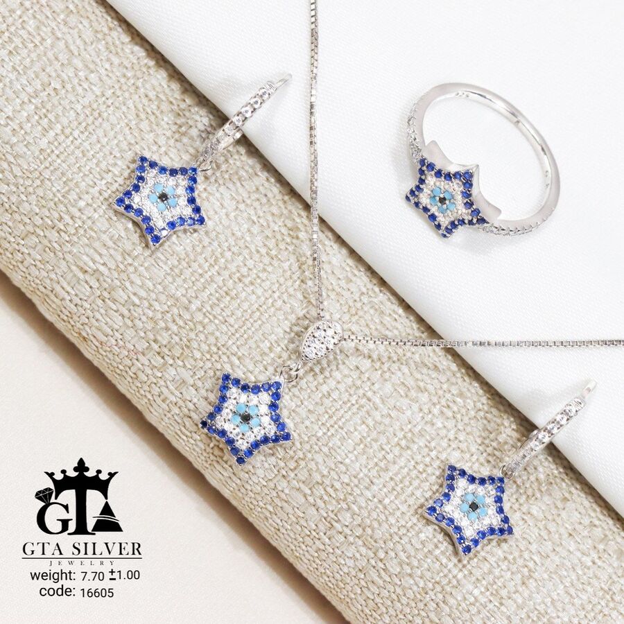 نیم ست نقره میکرو طرح چشم نظر کد 16603