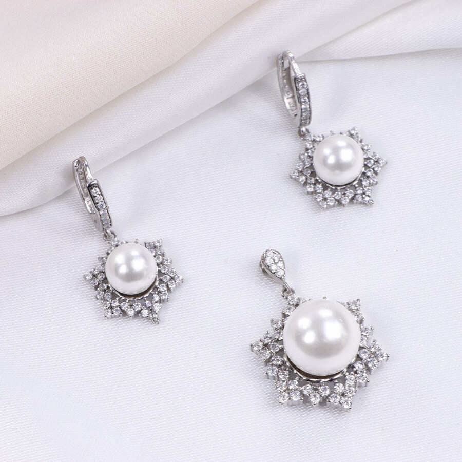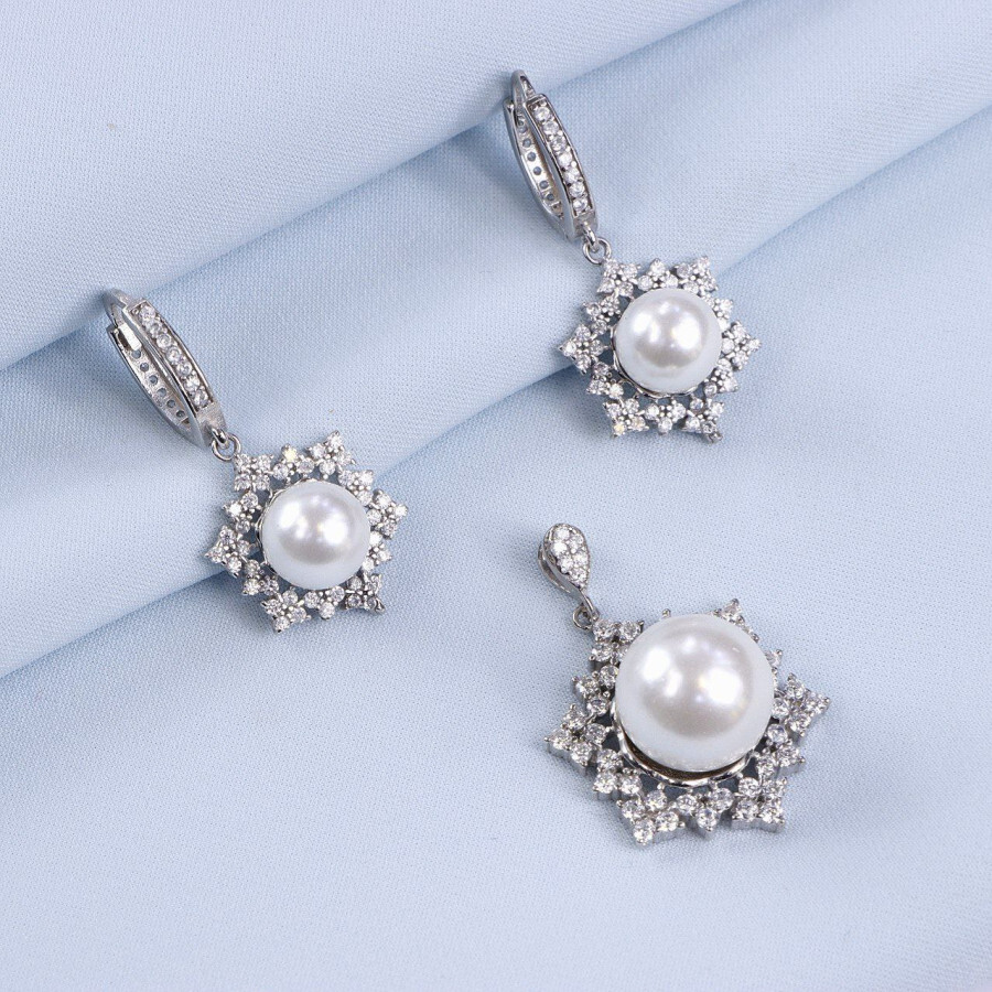 نیم ست میکرو همراه با روکش آبطلای سفید؛ لازم به ذکر است که تمامی نگین های این نیم ست جدید و ظریف با روش جدید و به روز میکروستیگ مخراج کاری شده اند.
