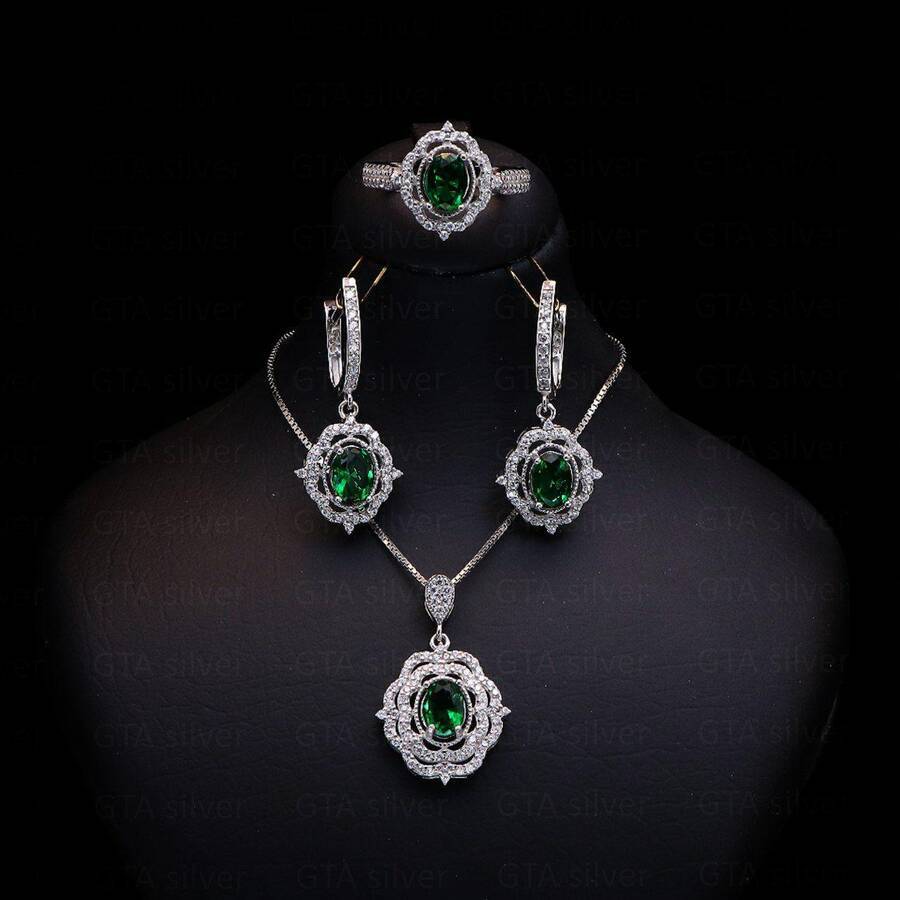 نیم ست مدل میکرو همراه با روکش آبطلای سفید؛ لازم به ذکر می باشد که عیار این کار مانند تمامی کارهای موجود, عیار استاندارد 925 بوده و تمامی نگین های این نیم ست با روش جدید و به روز میکروستیگ مخراج کاری شده اند.