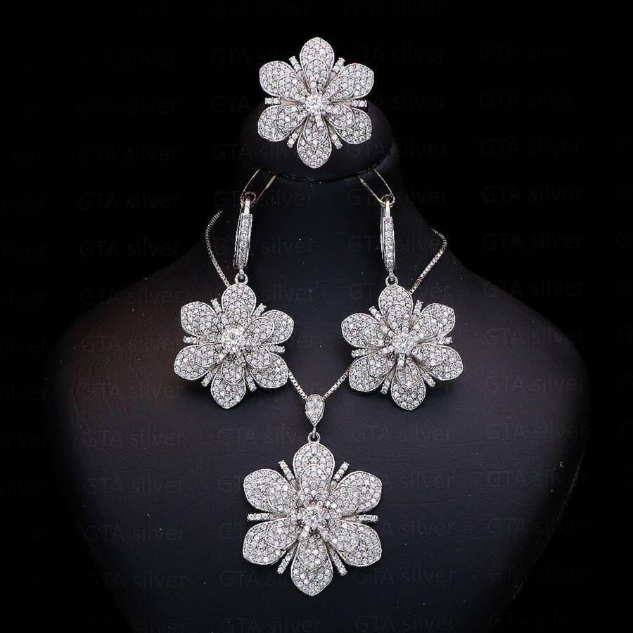 نیم ست مدل میکرو همراه با روکش آبطلای سفید؛ لازم به ذکر می باشد که عیار این کار مانند تمامی کارهای موجود, عیار استاندارد 925 بوده و تمامی نگین های این نیم ست با روش جدید و به روز میکروستیگ مخراج کاری شده اند.