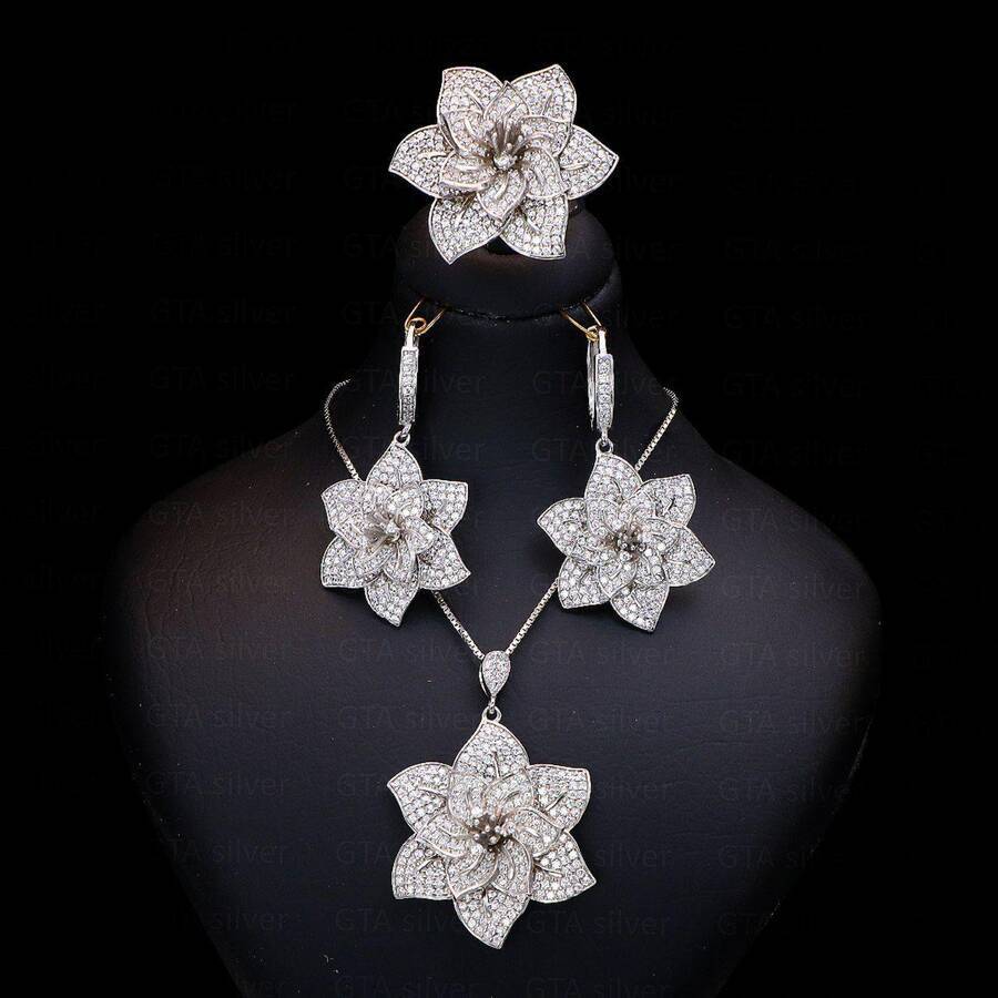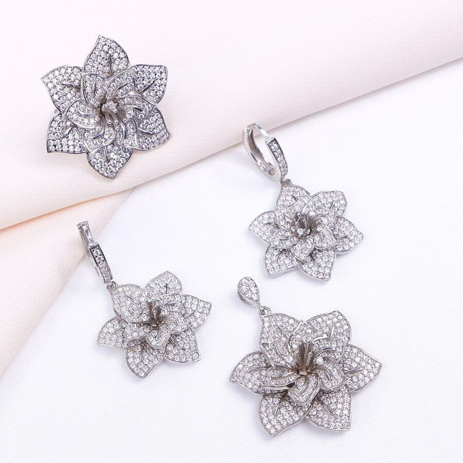 نیم ست مدل میکرو همراه با روکش آبطلای سفید؛ لازم به ذکر می باشد که عیار این کار مانند تمامی کارهای موجود, عیار استاندارد 925 بوده و تمامی نگین های این نیم ست با روش جدید و به روز میکروستیگ مخراج کاری شده اند.