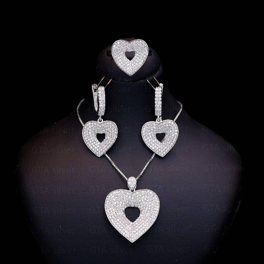 نیم ست مدل میکرو همراه با روکش آبطلای سفید؛ لازم به ذکر می باشد که عیار این کار مانند تمامی کارهای موجود, عیار استاندارد 925 بوده و تمامی نگین های این نیم ست با روش جدید و به روز میکروستیگ مخراج کاری شده اند.
