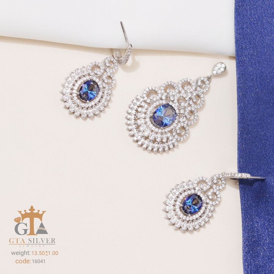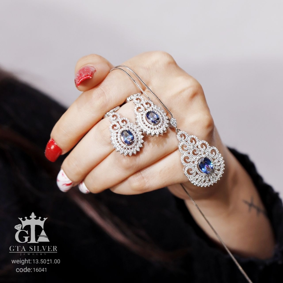 نیم ست مدل میکرو همراه با روکش آبطلای سفید؛ لازم به ذکر می باشد که عیار این کار مانند تمامی کارهای موجود, عیار استاندارد 925 بوده و تمامی نگین های این نیم ست با روش جدید و به روز میکروستیگ مخراج کاری شده اند.