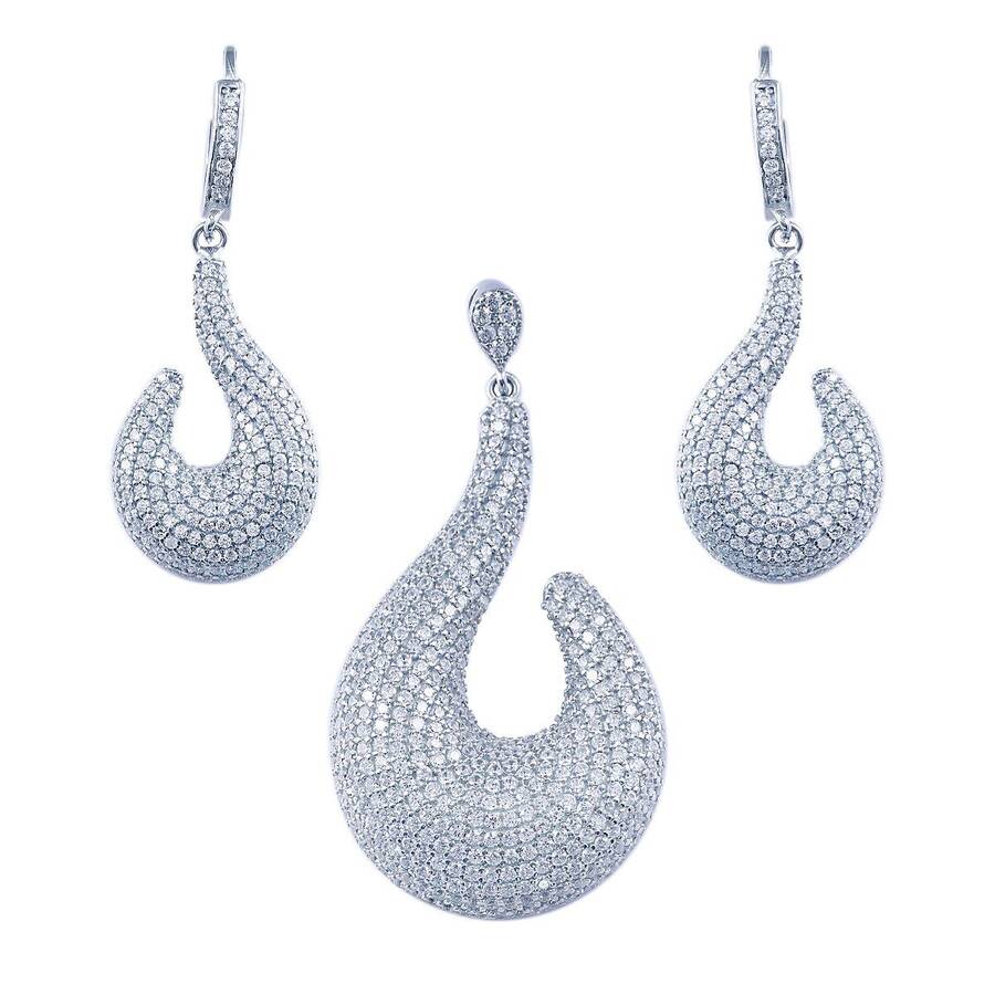 نیم ست مدل میکرو همراه با روکش آبطلای سفید؛ لازم به ذکر می باشد که عیار این کار مانند تمامی کارهای موجود, عیار استاندارد 925 بوده و تمامی نگین های این نیم ست با روش جدید و به روز میکروستیگ مخراج کاری شده اند.