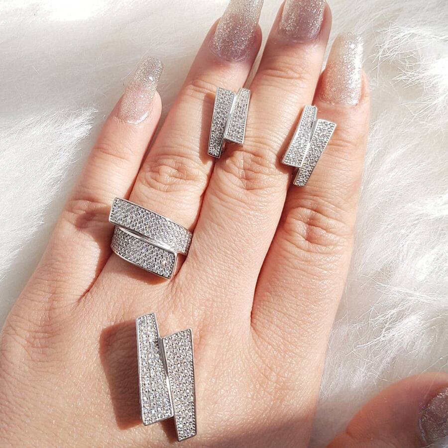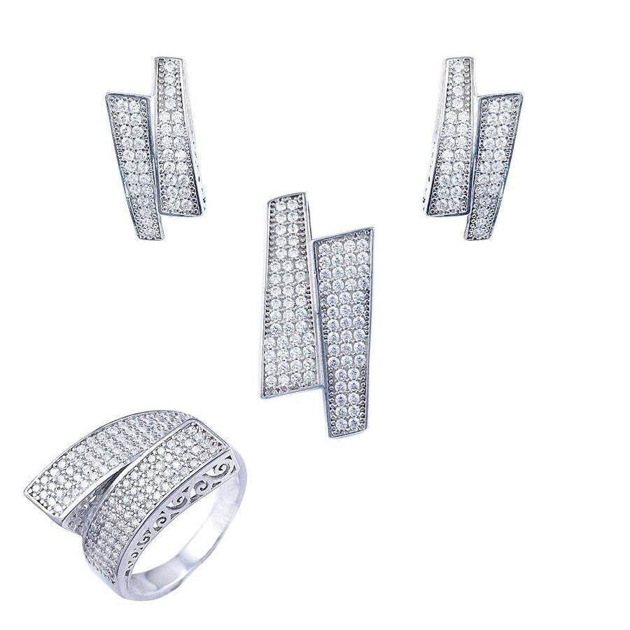 نیم ست مدل میکرو همراه با روکش آبطلای سفید؛ لازم به ذکر می باشد که عیار این کار مانند تمامی کارهای موجود, عیار استاندارد 925 بوده و تمامی نگین های این نیم ست با روش جدید و به روز میکروستیگ مخراج کاری شده اند.