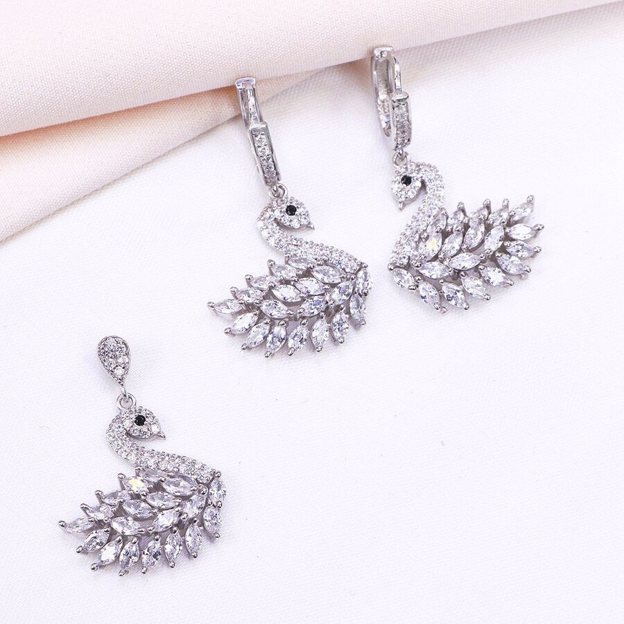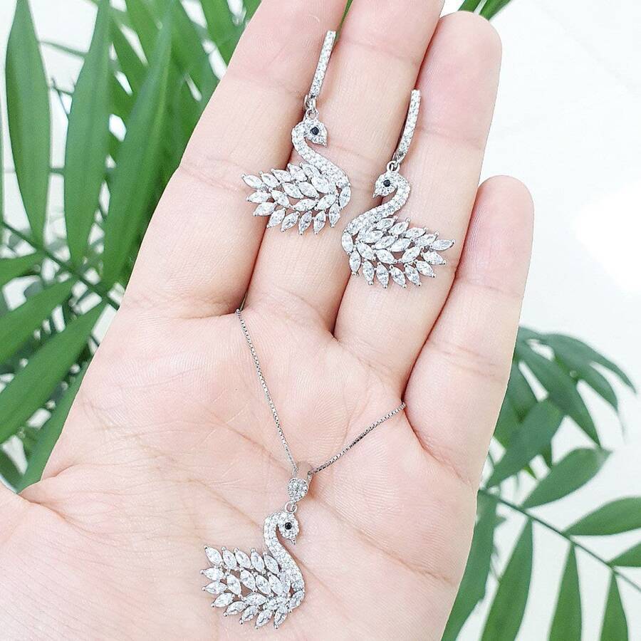 نیم ست مدل میکرو طرح قو با نگین های ریز و درشت؛ لازم به ذکر است که تمامی نگین های این نیم ست جدید و ظریف با روش جدید و به روز میکروستیگ مخراج کاری شده اند.