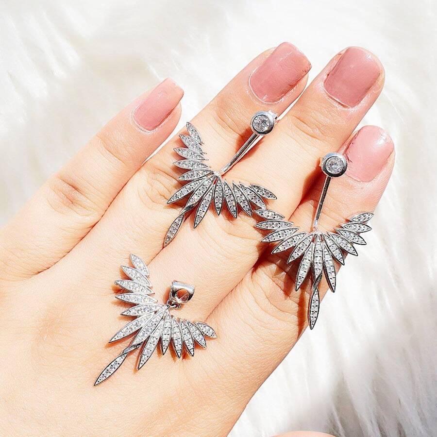 نیم ست مدل میکرو همراه با روکش آبطلای سفید؛ لازم به ذکر است که تمامی نگین های این نیم ست جدید و ظریف با روش جدید و به روز میکروستیگ مخراج کاری شده اند.