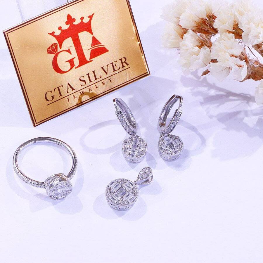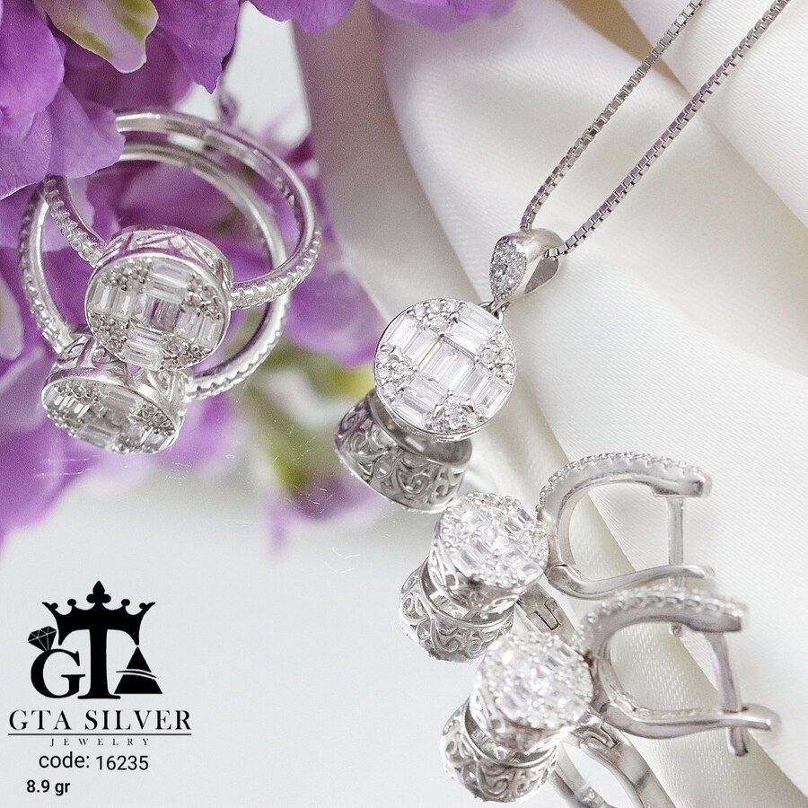 نیم ست میکرو همراه با روکش آبطلای سفید؛ لازم به ذکر است که تمامی نگین های این نیم ست جدید و ظریف با روش جدید و به روز میکروستیگ مخراج کاری شده اند.