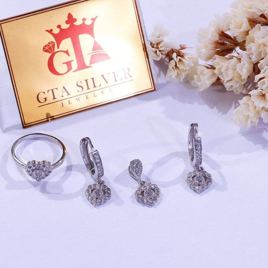 نیم ست میکرو همراه با روکش آبطلای سفید؛ لازم به ذکر است که تمامی نگین های این نیم ست جدید و ظریف با روش جدید و به روز میکروستیگ مخراج کاری شده اند.