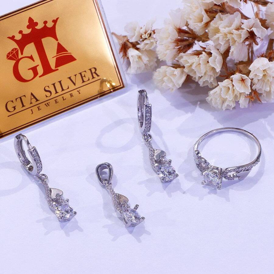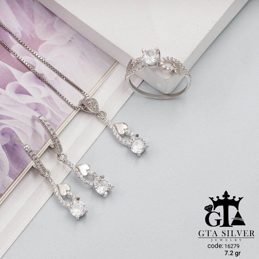 نیم ست میکرو همراه با روکش آبطلای سفید؛ لازم به ذکر است که تمامی نگین های این نیم ست جدید و ظریف با روش جدید و به روز میکروستیگ مخراج کاری شده اند.