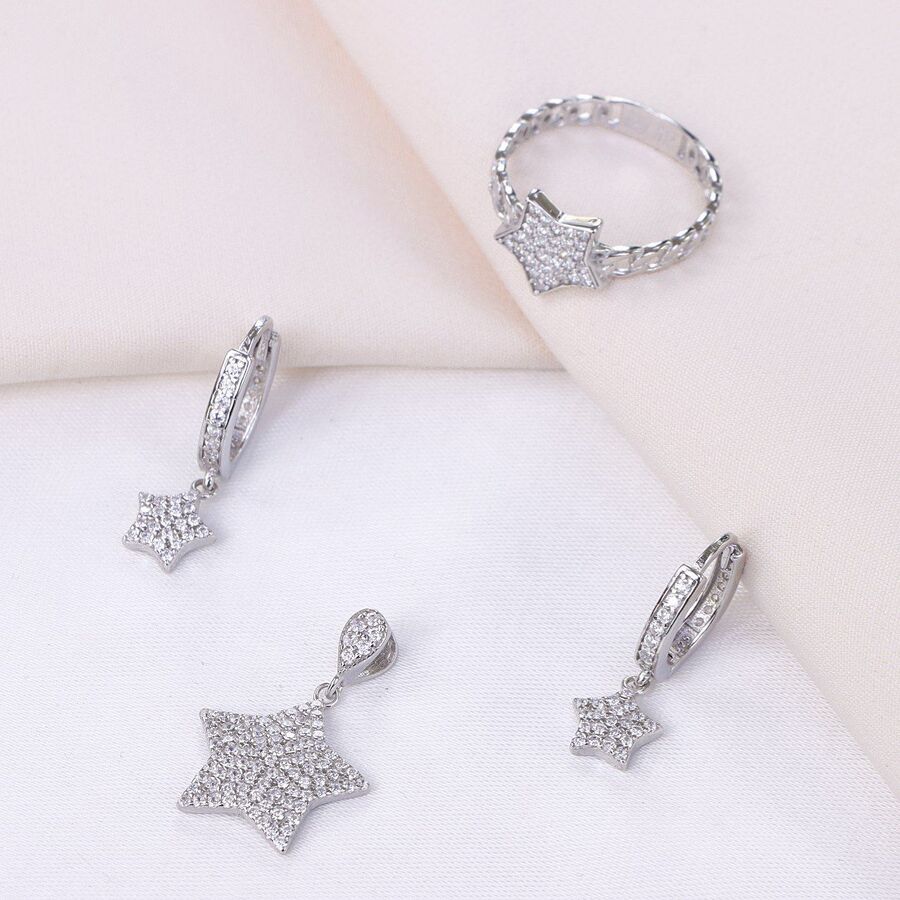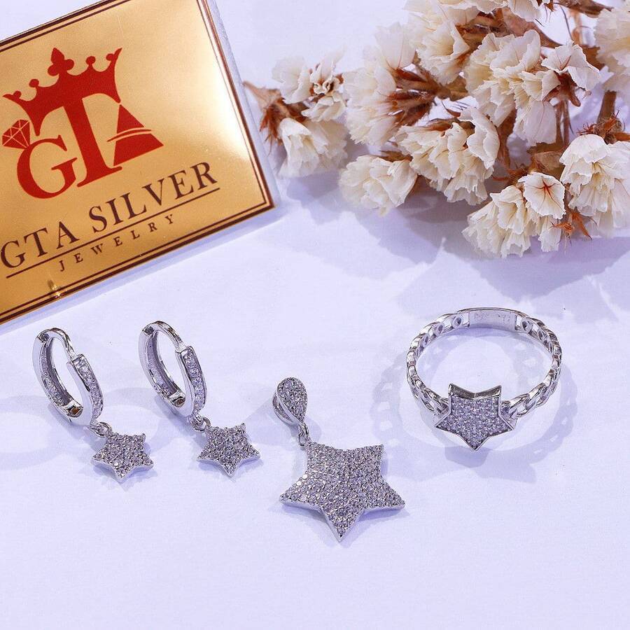 نیم ست میکرو همراه با روکش آبطلای سفید؛ لازم به ذکر است که تمامی نگین های این نیم ست جدید و ظریف با روش جدید و به روز میکروستیگ مخراج کاری شده اند.