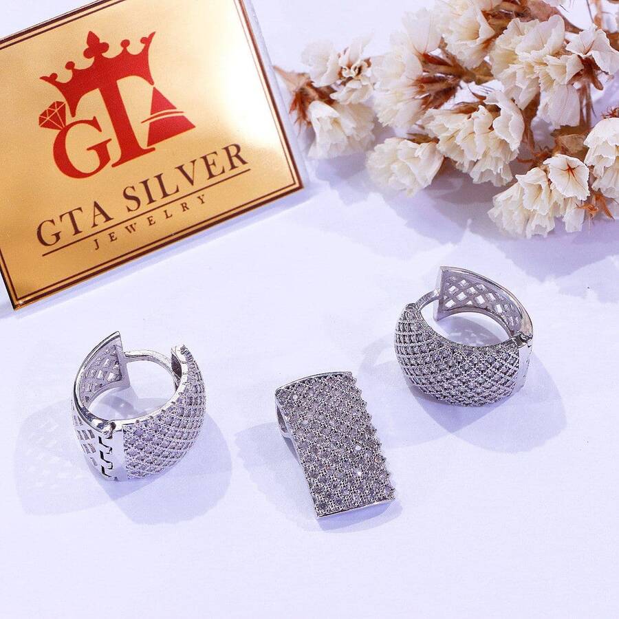 نیم ست میکرو همراه با روکش آبطلای سفید؛ لازم به ذکر است که تمامی نگین های این نیم ست جدید و ظریف با روش جدید و به روز میکروستیگ مخراج کاری شده اند.
