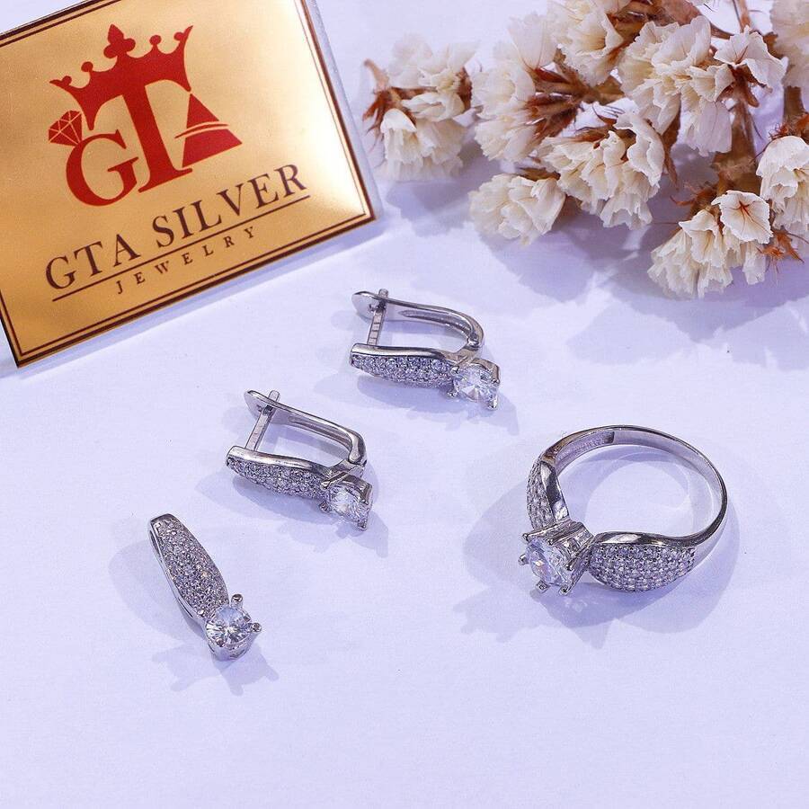 نیم ست میکرو همراه با روکش آبطلای سفید؛ لازم به ذکر است که تمامی نگین های این نیم ست جدید و ظریف با روش جدید و به روز میکروستیگ مخراج کاری شده اند.