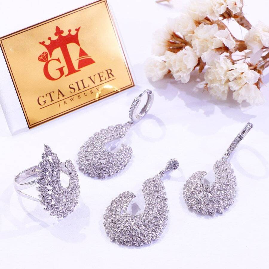 نیم ست میکرو همراه با روکش آبطلای سفید؛ لازم به ذکر است که تمامی نگین های این نیم ست جدید و ظریف با روش جدید و به روز میکروستیگ مخراج کاری شده اند.