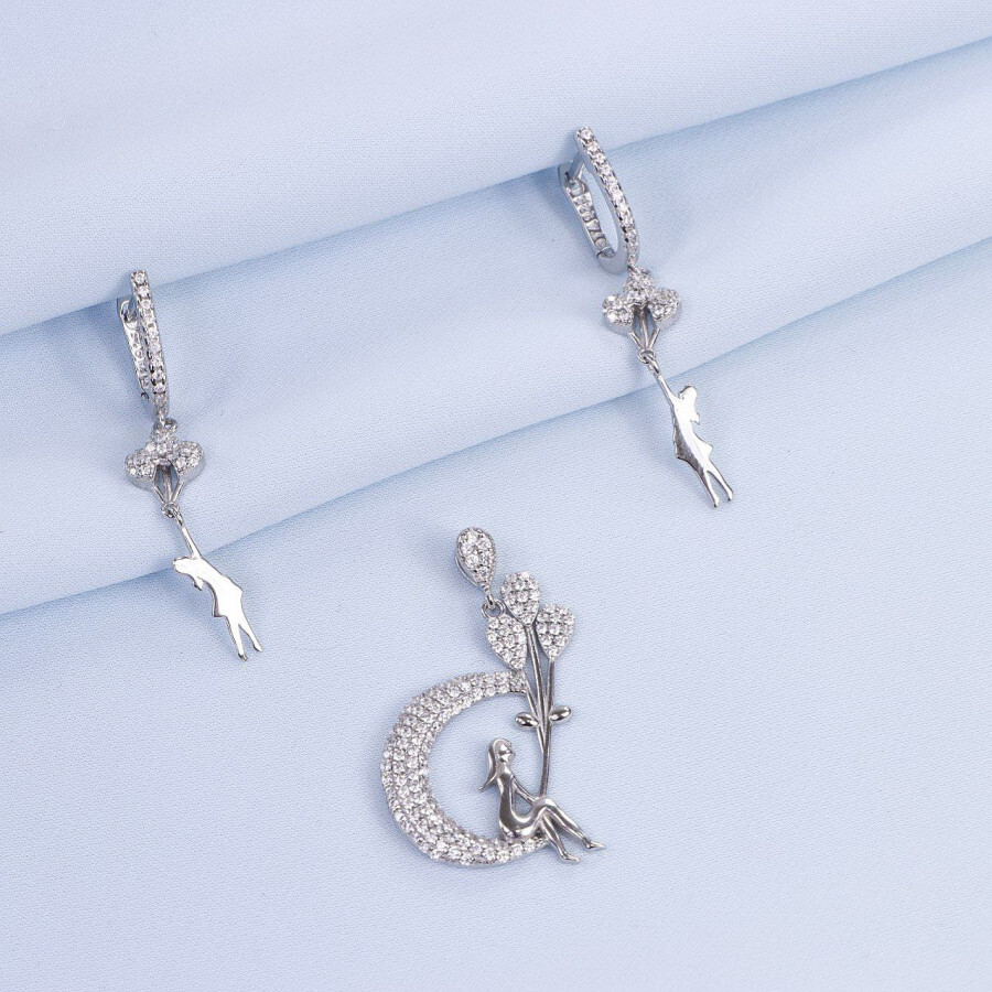 نیم ست میکرو همراه با روکش آبطلای سفید؛ لازم به ذکر است که تمامی نگین های این نیم ست جدید و ظریف با روش جدید و به روز میکروستیگ مخراج کاری شده اند.