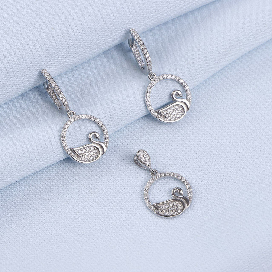 نیم ست میکرو همراه با روکش آبطلای سفید؛ لازم به ذکر است که تمامی نگین های این نیم ست جدید و ظریف با روش جدید و به روز میکروستیگ مخراج کاری شده اند.