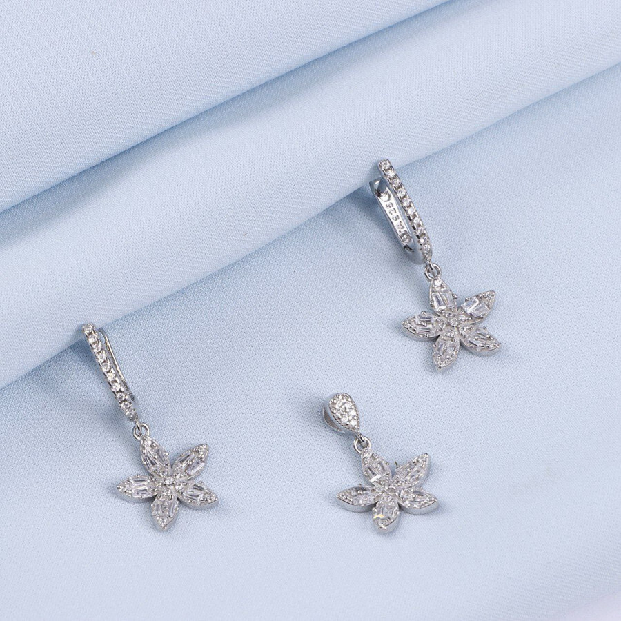 نیم ست میکرو همراه با روکش آبطلای سفید؛ لازم به ذکر است که تمامی نگین های این نیم ست جدید و ظریف با روش جدید و به روز میکروستیگ مخراج کاری شده اند.