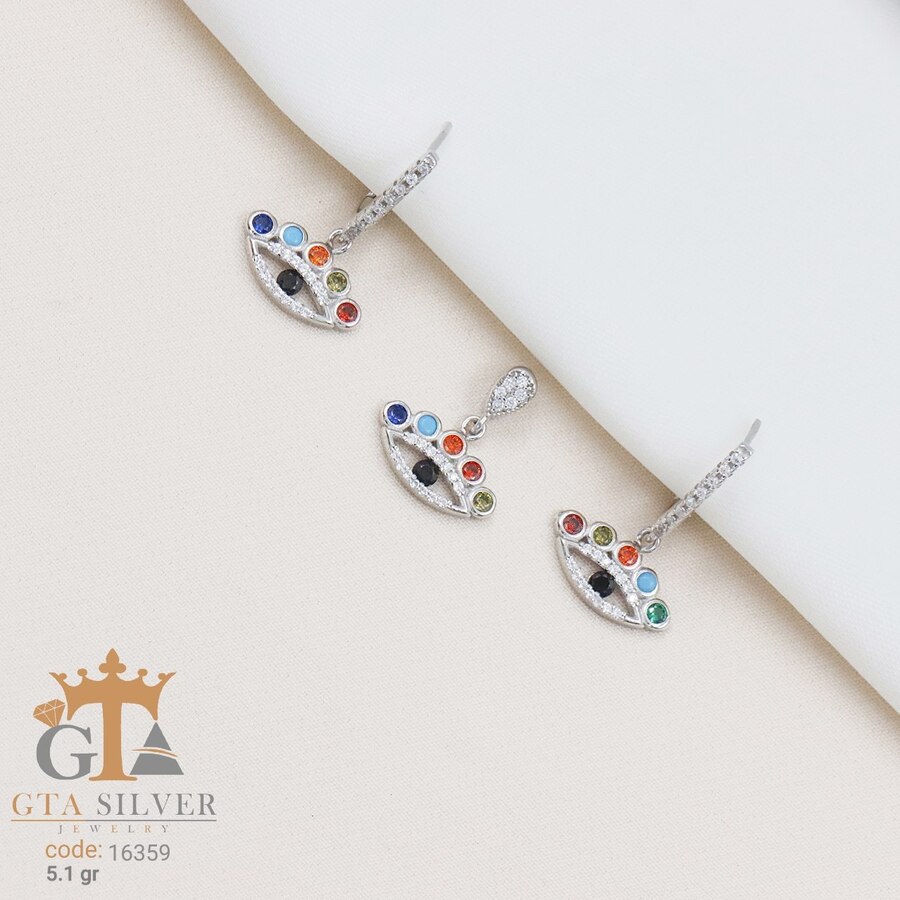 نیم ست میکرو همراه با روکش آبطلای سفید؛ لازم به ذکر است که تمامی نگین های این نیم ست جدید و ظریف با روش جدید و به روز میکروستیگ مخراج کاری شده اند.