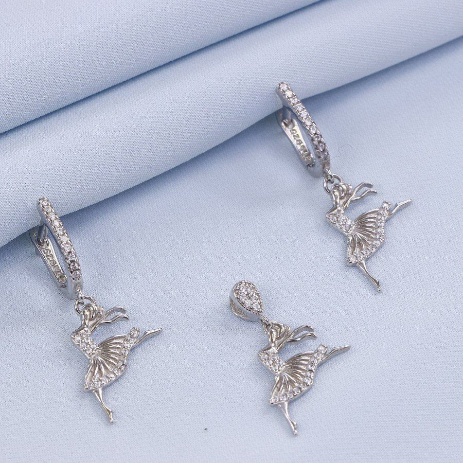 نیم ست میکرو همراه با روکش آبطلای سفید؛ لازم به ذکر است که تمامی نگین های این نیم ست جدید و ظریف با روش جدید و به روز میکروستیگ مخراج کاری شده اند.