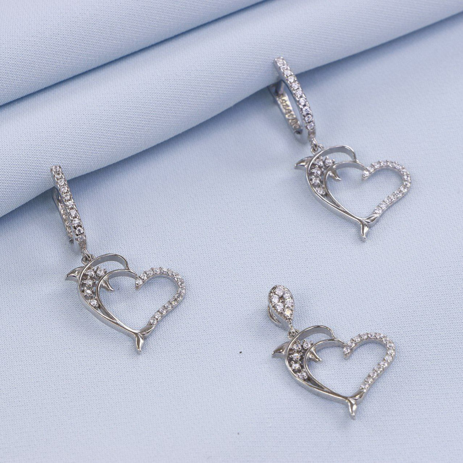 نیم ست میکرو همراه با روکش آبطلای سفید؛ لازم به ذکر است که تمامی نگین های این نیم ست جدید و ظریف با روش جدید و به روز میکروستیگ مخراج کاری شده اند.
