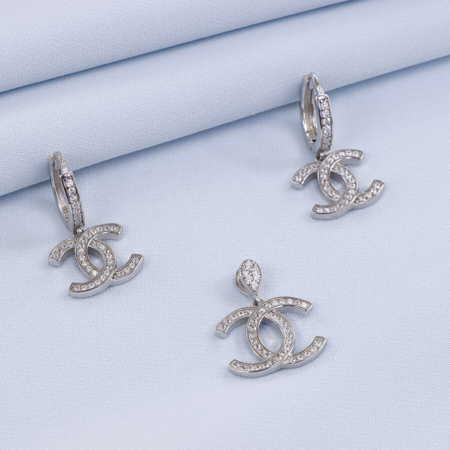 نیم ست میکرو همراه با روکش آبطلای سفید؛ لازم به ذکر است که تمامی نگین های این نیم ست جدید و ظریف با روش جدید و به روز میکروستیگ مخراج کاری شده اند.