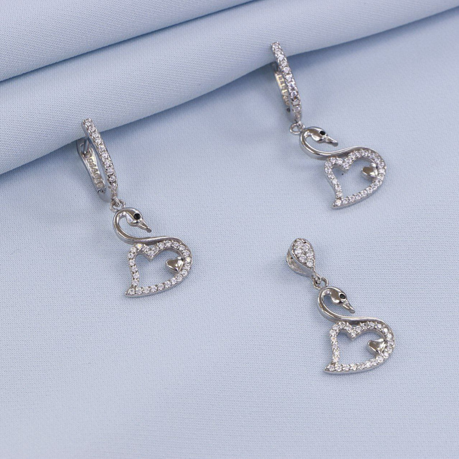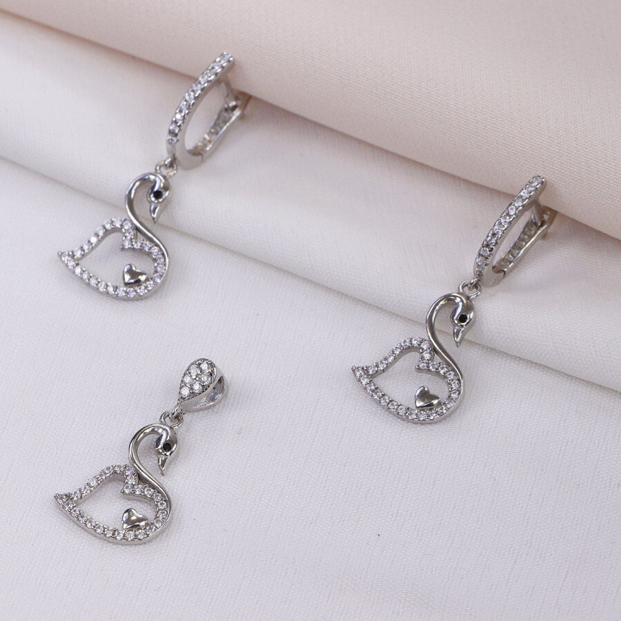 نیم ست میکرو همراه با روکش آبطلای سفید؛ لازم به ذکر است که تمامی نگین های این نیم ست جدید و ظریف با روش جدید و به روز میکروستیگ مخراج کاری شده اند.