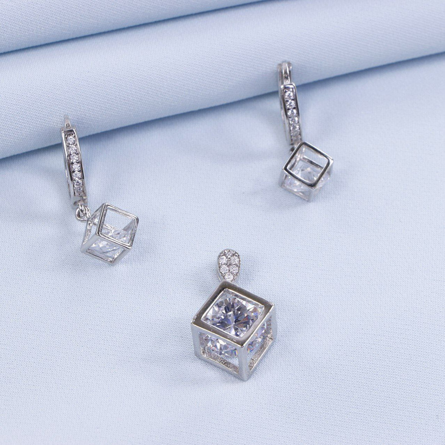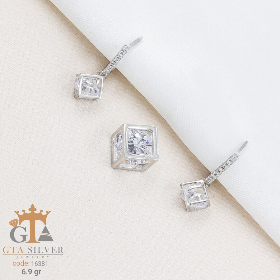 نیم ست میکرو همراه با روکش آبطلای سفید؛ لازم به ذکر است که تمامی نگین های این نیم ست جدید و ظریف با روش جدید و به روز میکروستیگ مخراج کاری شده اند.