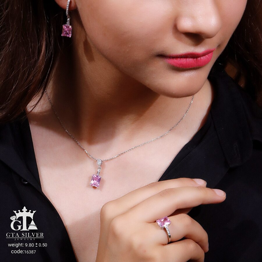 نیم ست نقره مدل میکرو همراه با روکش آبطلای سفید؛ عیار 925، تمامی نگین های این نیم ست جدید و ظریف با روش جدید میکروستینگ مخراج کاری شده است.