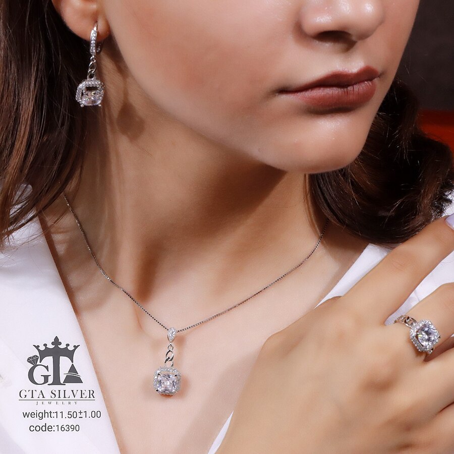 نیم ست نقره مدل میکرو همراه با روکش آبطلای سفید؛ عیار 925، تمامی نگین های این نیم ست جدید و ظریف با روش جدید میکروستینگ مخراج کاری شده است.