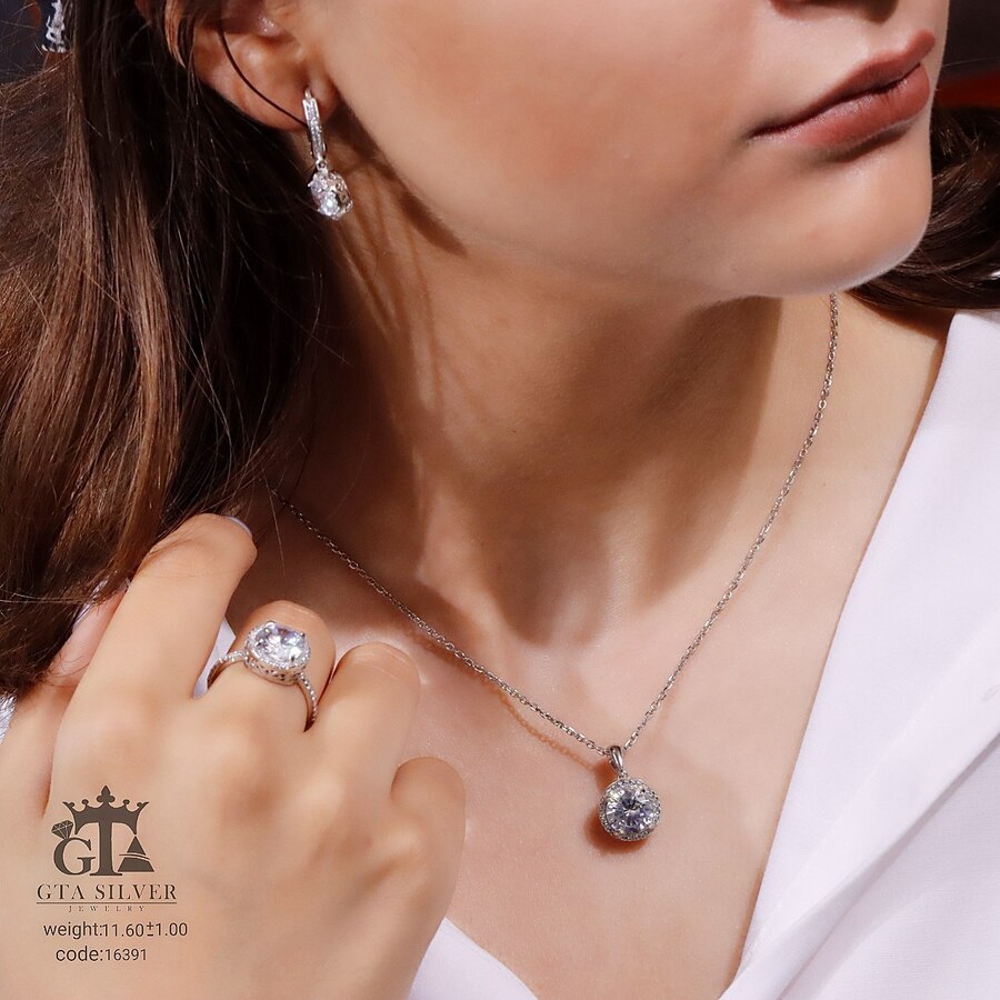 نیم ست نقره مدل میکرو همراه با روکش آبطلای سفید؛ عیار 925، تمامی نگین های این نیم ست جدید و ظریف با روش جدید میکروستینگ مخراج کاری شده است.