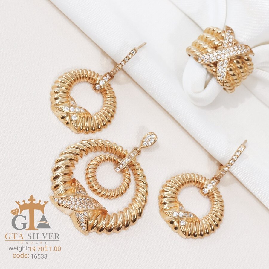 نیم ست نقره مدل میکرو همراه با روکش آبطلای سفید؛ عیار 925، تمامی نگین های این نیم ست جدید، ظریف با روش جدید میکروستینگ مخراج کاری شده