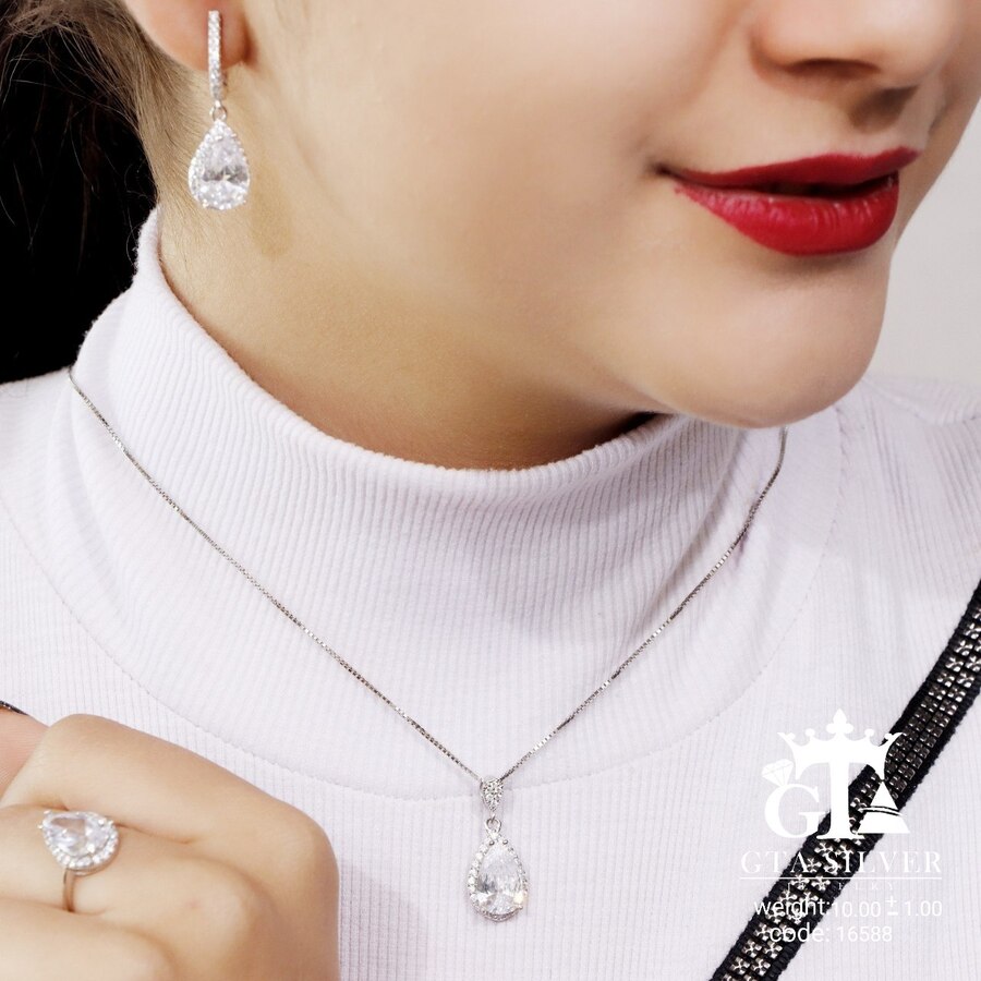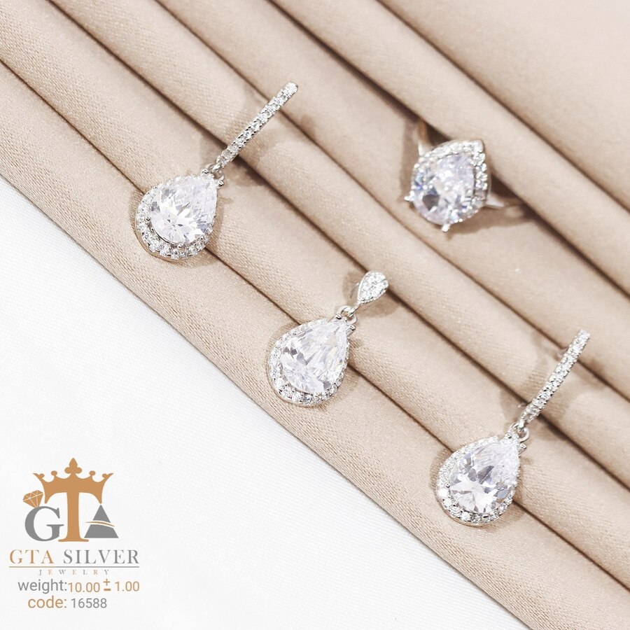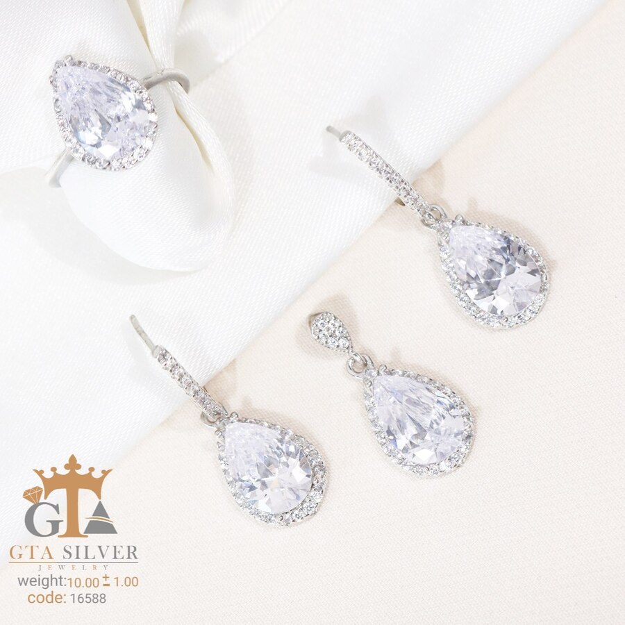 نیم ست نقره مدل میکرو همراه با روکش آبطلای سفید؛ عیار 925، تمامی نگین های این نیم ست جدید، ظریف با روش جدید میکروستینگ مخراج کاری شده