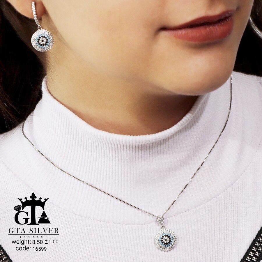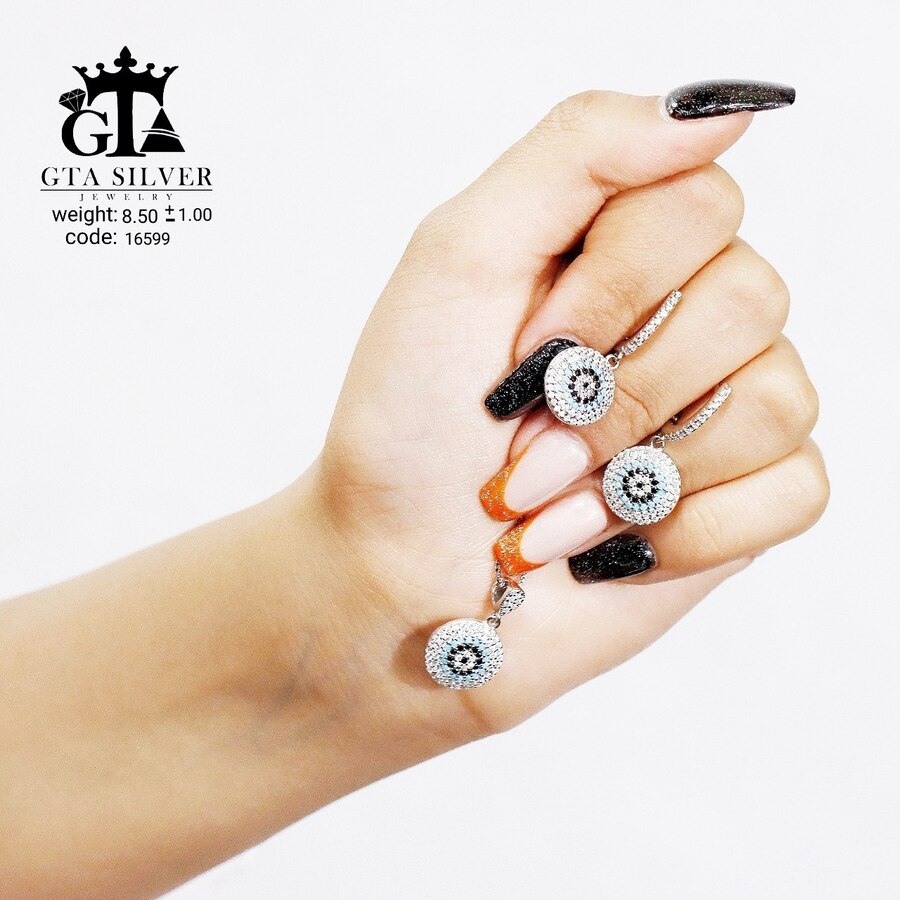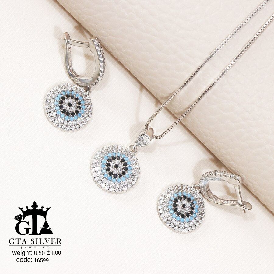 نیم ست نقره مدل میکرو همراه با روکش آبطلای سفید؛ عیار 925، تمامی نگین های این نیم ست جدید، ظریف با روش جدید میکروستینگ مخراج کاری شده