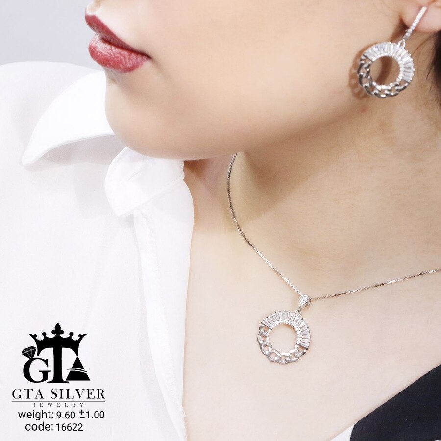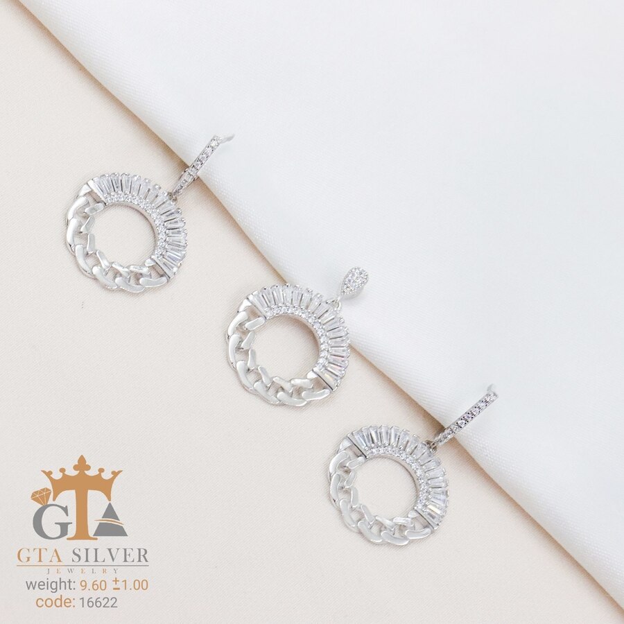 نیم ست نقره مدل میکرو همراه با روکش آبطلای سفید؛ عیار 925، تمامی نگین های این نیم ست جدید، ظریف با روش جدید میکروستینگ مخراج کاری شده