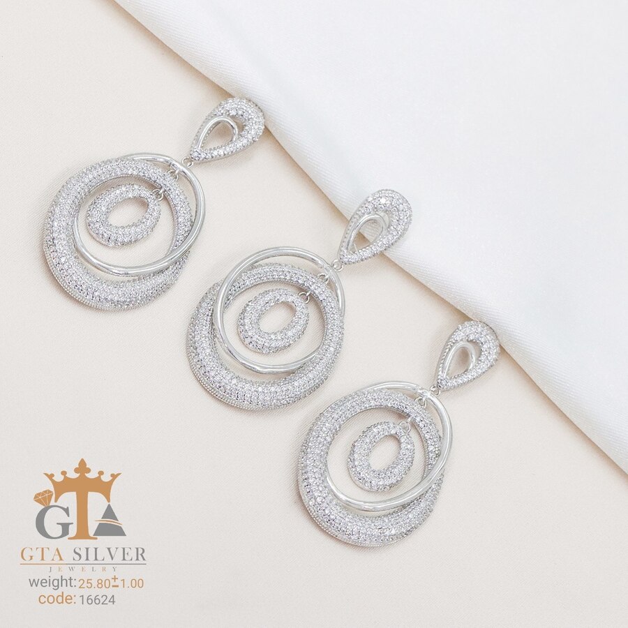 نیم ست نقره مدل میکرو همراه با روکش آبطلای سفید؛ عیار 925، تمامی نگین های این نیم ست جدید، ظریف با روش جدید میکروستینگ مخراج کاری شده