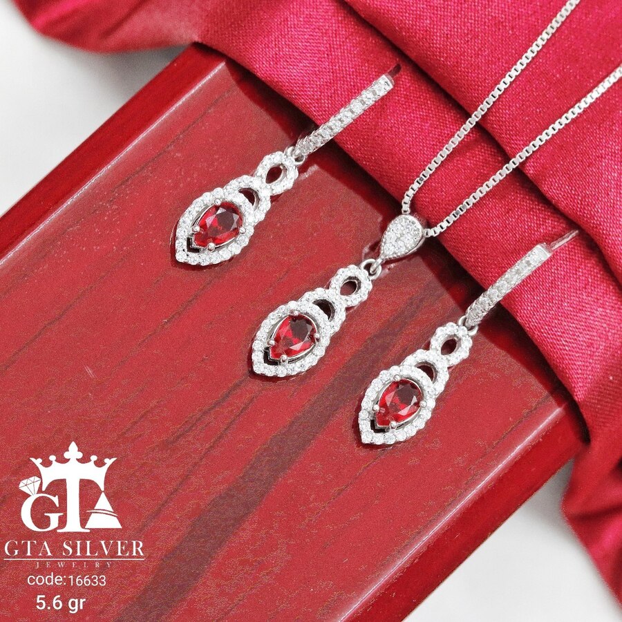 نیم ست نقره مدل میکرو همراه با روکش آبطلای سفید؛ عیار 925، تمامی نگین های این نیم ست جدید، ظریف با روش جدید میکروستینگ مخراج کاری شده