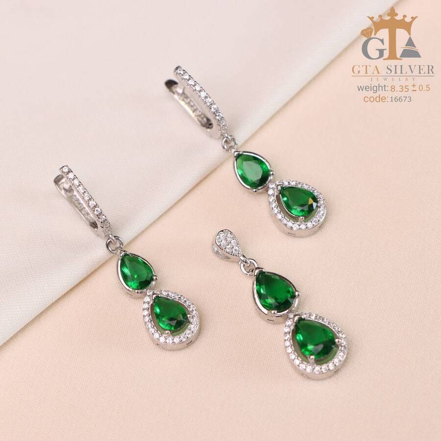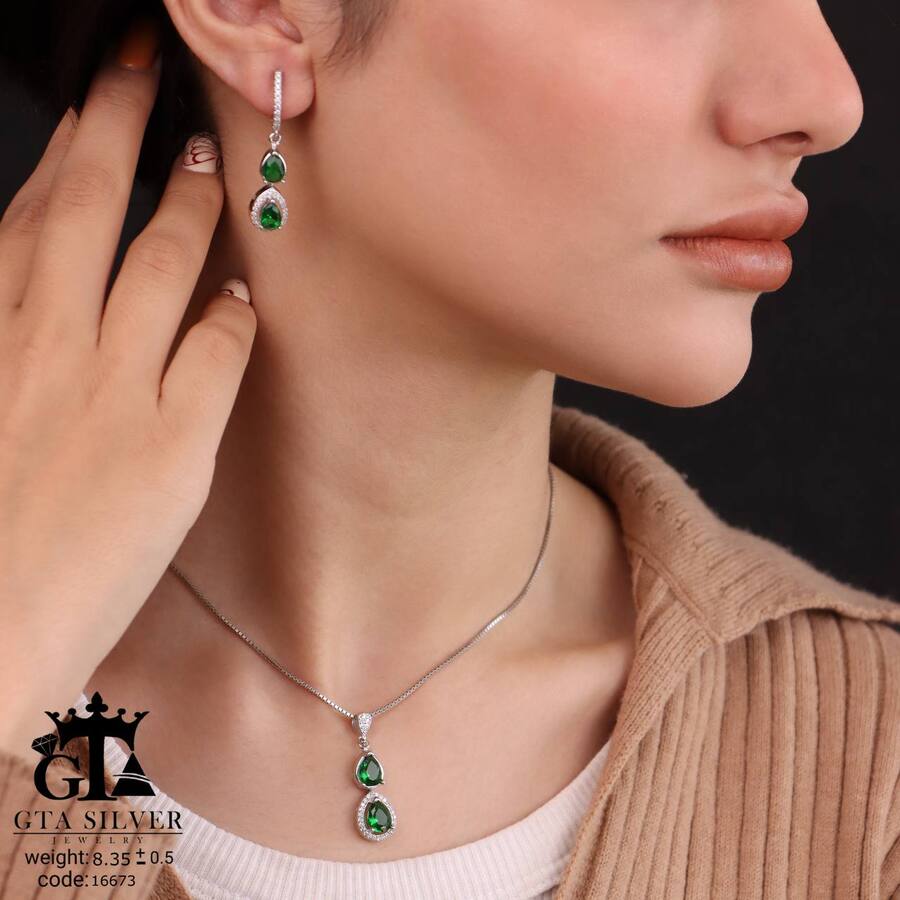 نیم ست نقره مدل میکرو همراه با روکش آبطلای سفید؛ عیار 925، تمامی نگین های این نیم ست جدید، ظریف با روش جدید میکروستینگ مخراج کاری شده