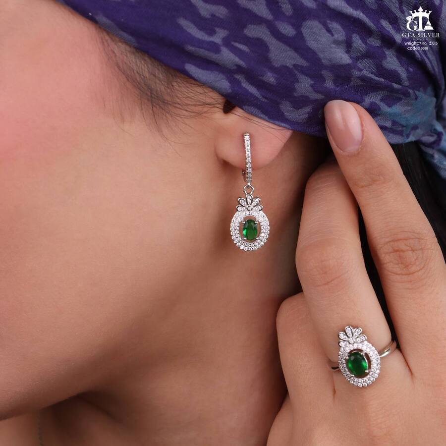 نیم ست نقره مدل میکرو همراه با روکش آبطلای سفید؛ عیار 925، تمامی نگین های این نیم ست جدید، ظریف با روش جدید میکروستینگ مخراج کاری شده