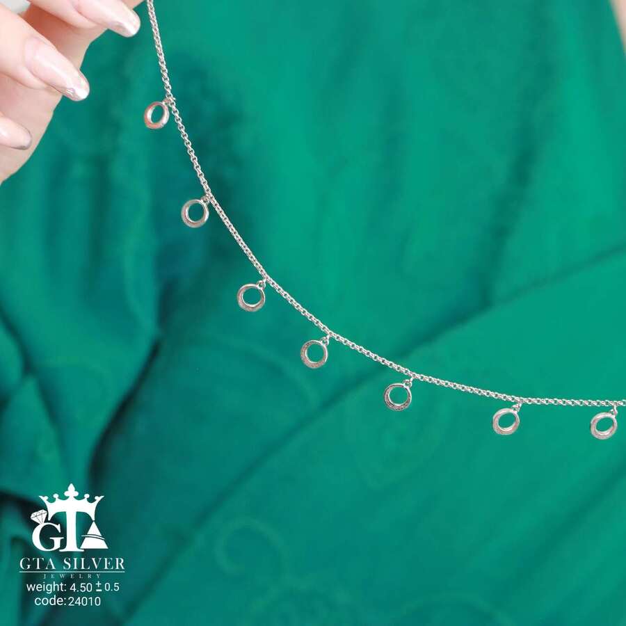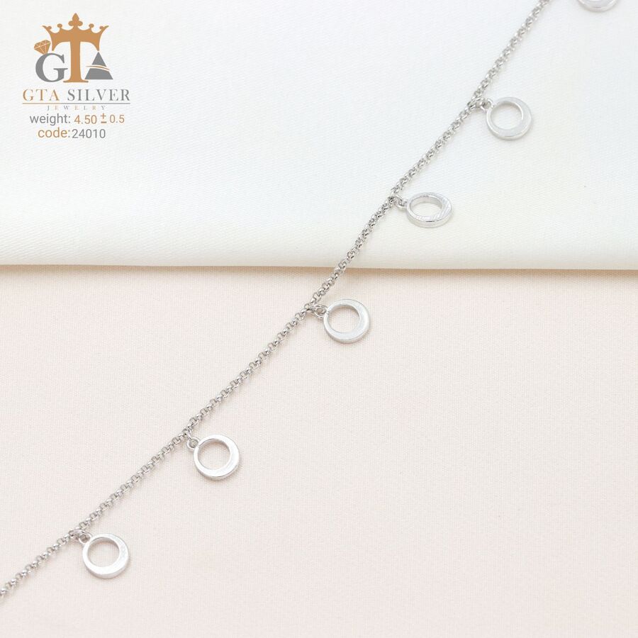 پابند میکرو نقره همراه با روکش آبطلای سفید؛ عیار این کار همانند تمامی کارهای موجود عیار 925 می باشد.