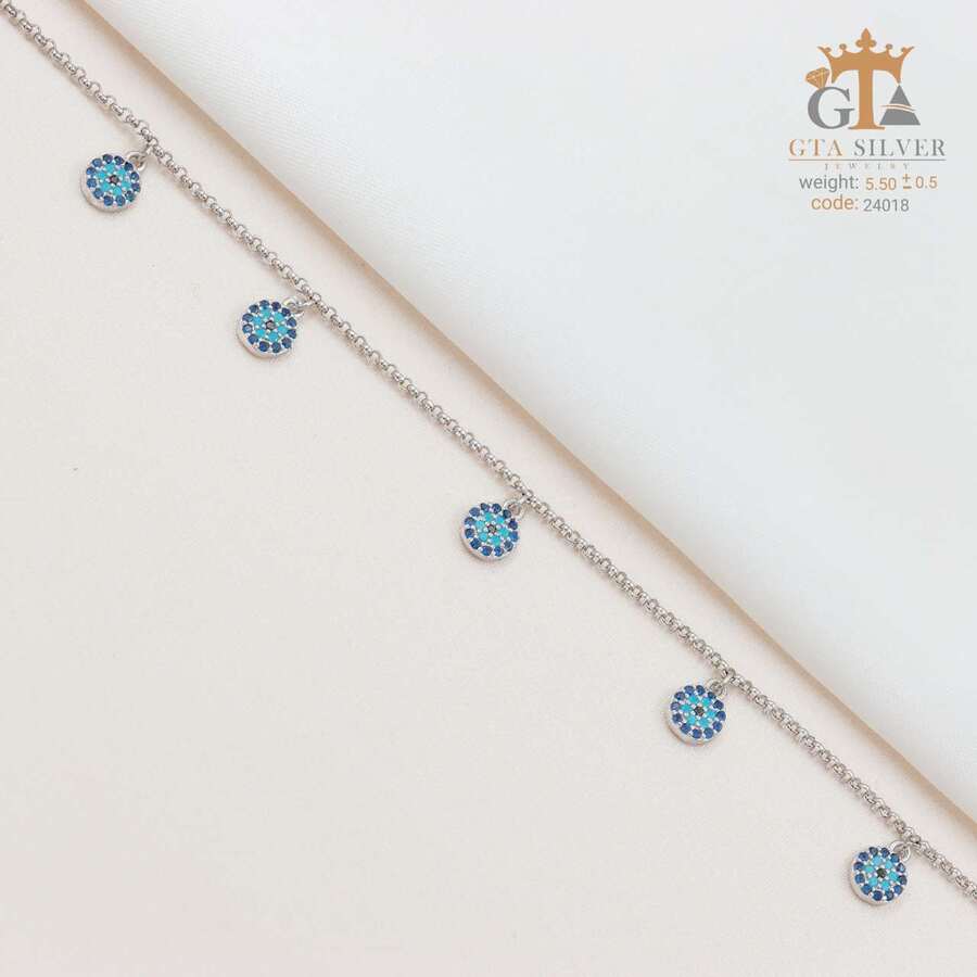 پابند میکرو نقره همراه با روکش آبطلای سفید؛ عیار 925، تمامی نگین های این پابند جدید و ظریف با روش جدید میکروستینگ مخراج کاری شده است.