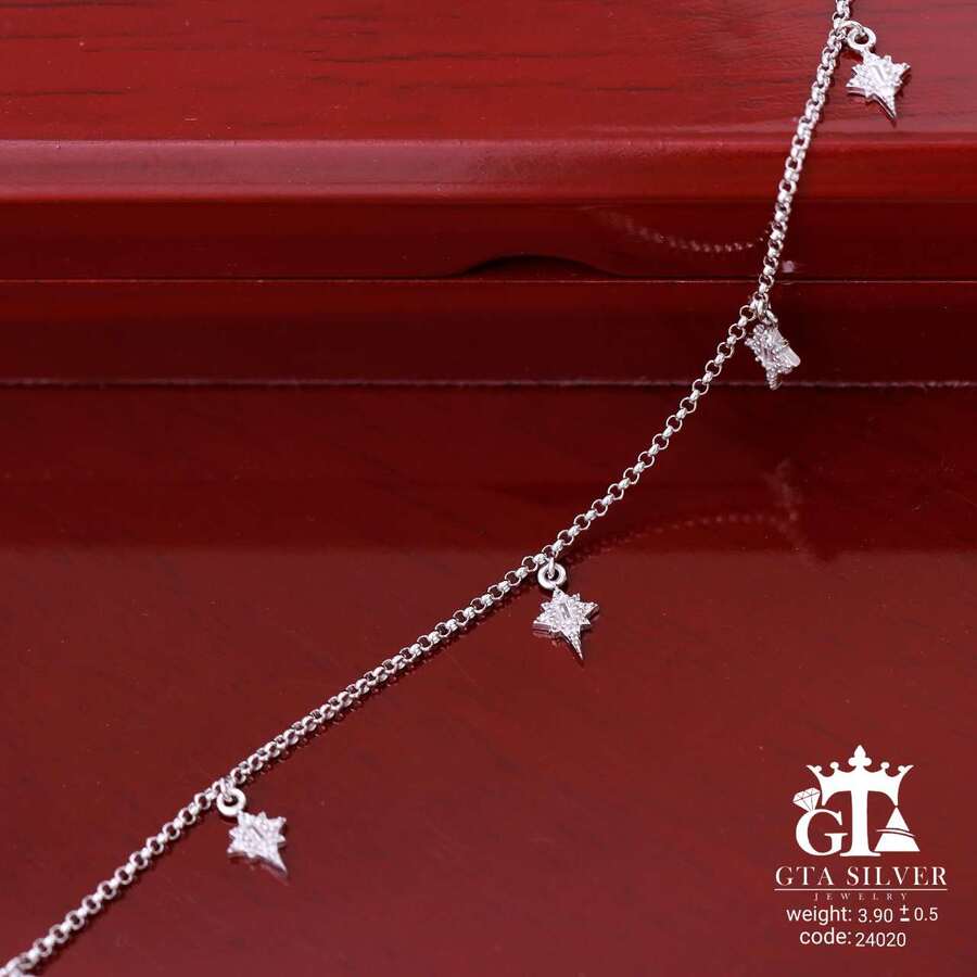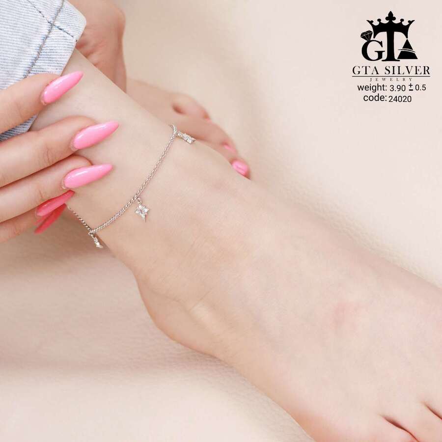 پابند میکرو نقره همراه با روکش آبطلای سفید؛ عیار 925، تمامی نگین های این پابند جدید و ظریف با روش جدید میکروستینگ مخراج کاری شده است.