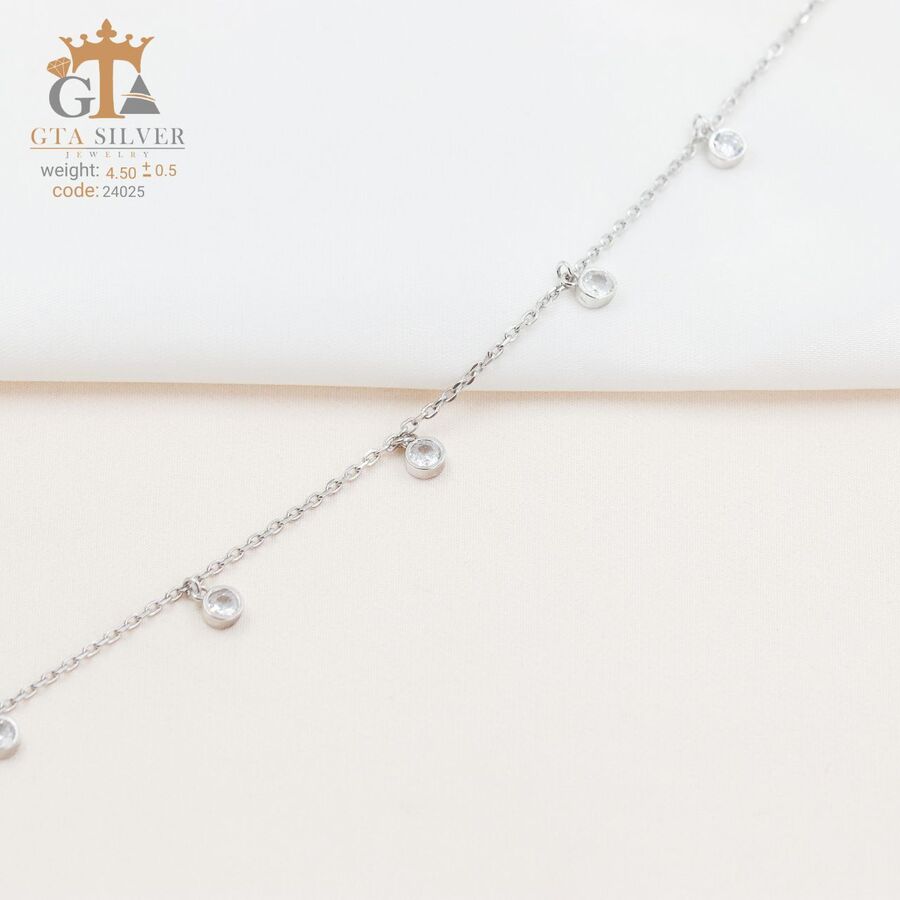 پابند میکرو نقره همراه با روکش آبطلای سفید؛ عیار 925، تمامی نگین های این پابند جدید و ظریف با روش جدید میکروستینگ مخراج کاری شده است.