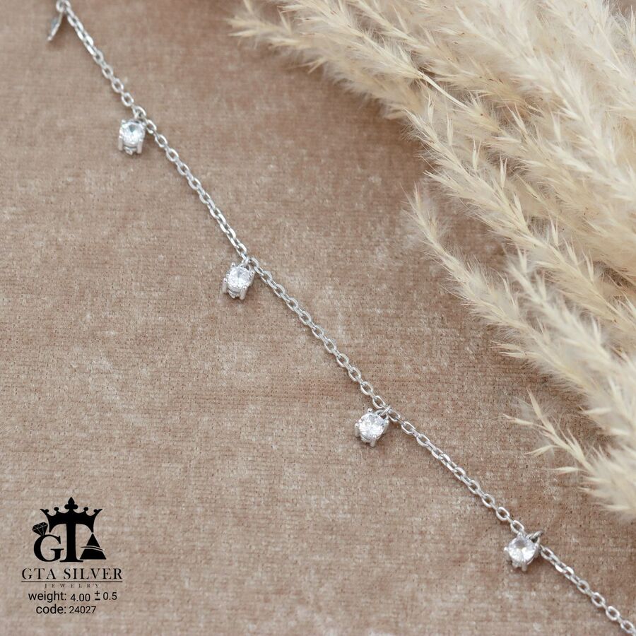 پابند میکرو نقره همراه با روکش آبطلای سفید؛ عیار 925، تمامی نگین های این پابند جدید و ظریف با روش جدید میکروستینگ مخراج کاری شده است.