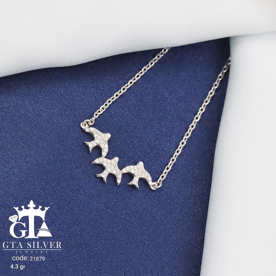 گردنبند نقره زنانه نگین دار میکرو طرح پرنده کد 21879