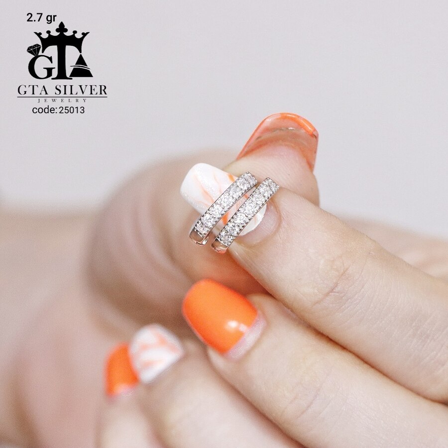 گوشواره مینیمال نقره مدل میکرو همراه با روکش آبطلای سفید؛ عیار 925، تمامی نگین های این گوشواره جدید و ظریف با روش جدید میکروستینگ مخراج کاری شده است.