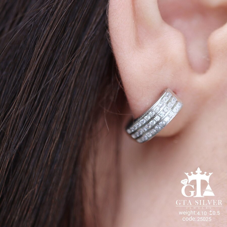 گوشواره مینیمال نقره مدل میکرو همراه با روکش آبطلای سفید؛ عیار 925، تمامی نگین های این گوشواره جدید و ظریف با روش جدید میکروستینگ مخراج کاری شده است.