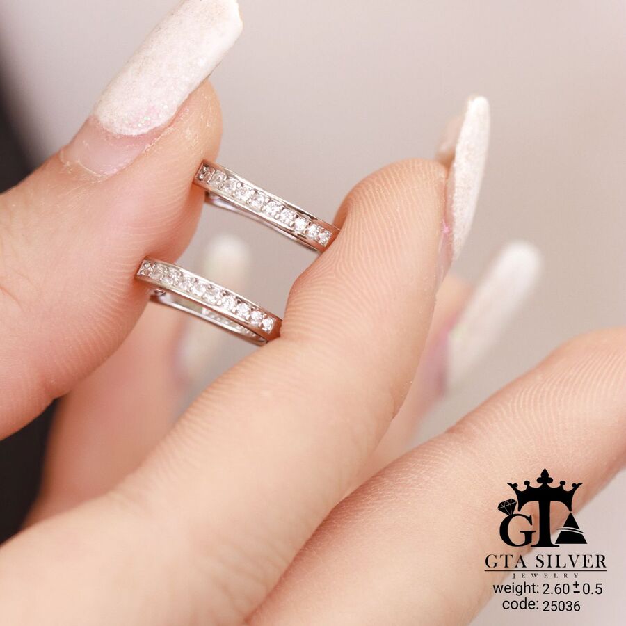 گوشواره مینیمال نقره مدل میکرو همراه با روکش آبطلای سفید؛ عیار 925، تمامی نگین های این گوشواره جدید و ظریف با روش جدید میکروستینگ مخراج کاری شده است.