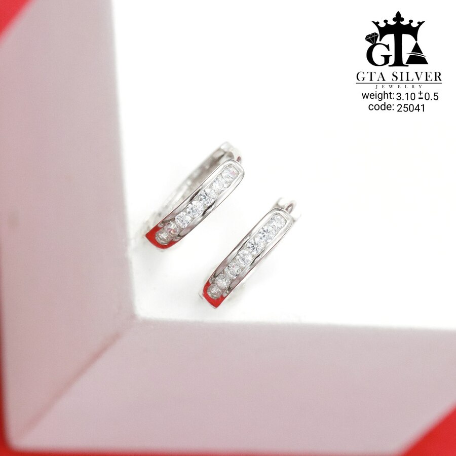 گوشواره مینیمال نقره مدل میکرو همراه با روکش آبطلای سفید؛ عیار 925، تمامی نگین های این گوشواره جدید و ظریف با روش جدید میکروستینگ مخراج کاری شده است.