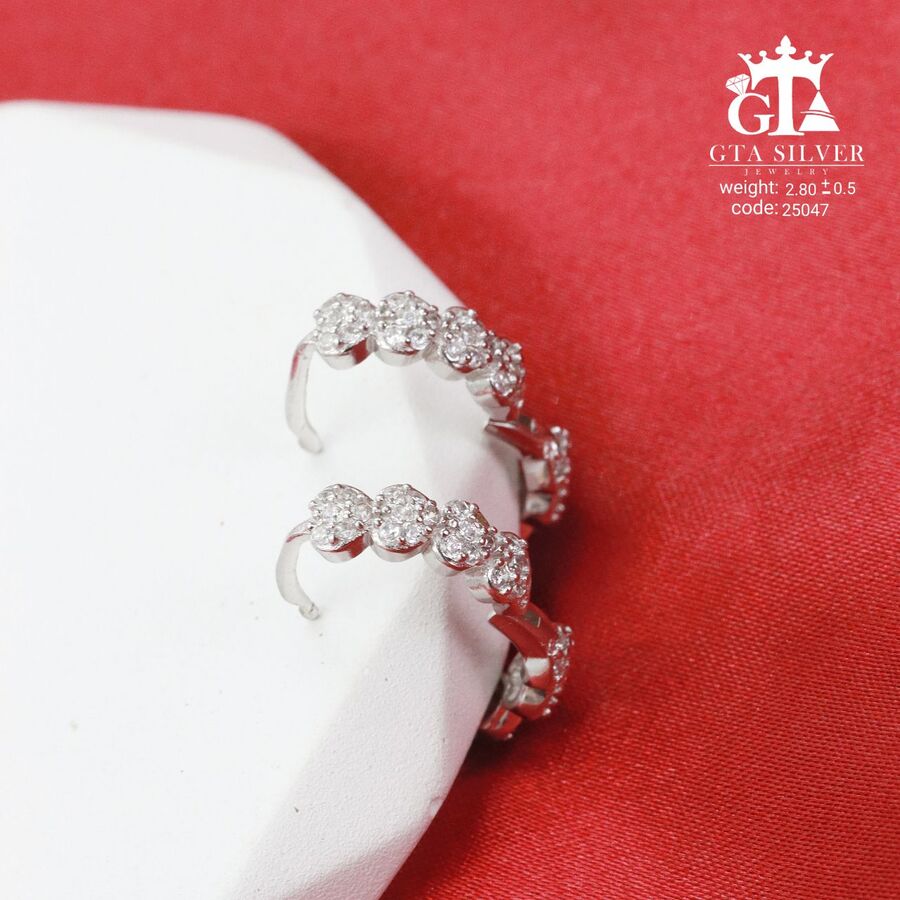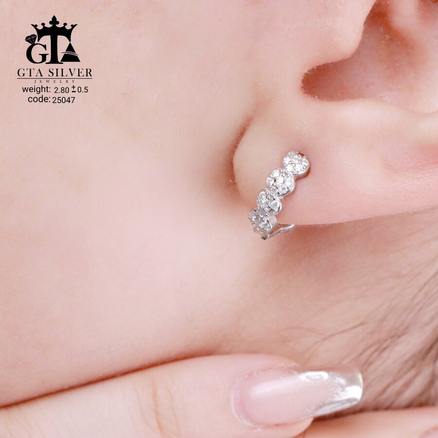 گوشواره مینیمال نقره مدل میکرو همراه با روکش آبطلای سفید؛ عیار 925، تمامی نگین های این گوشواره جدید و ظریف با روش جدید میکروستینگ مخراج کاری شده است.